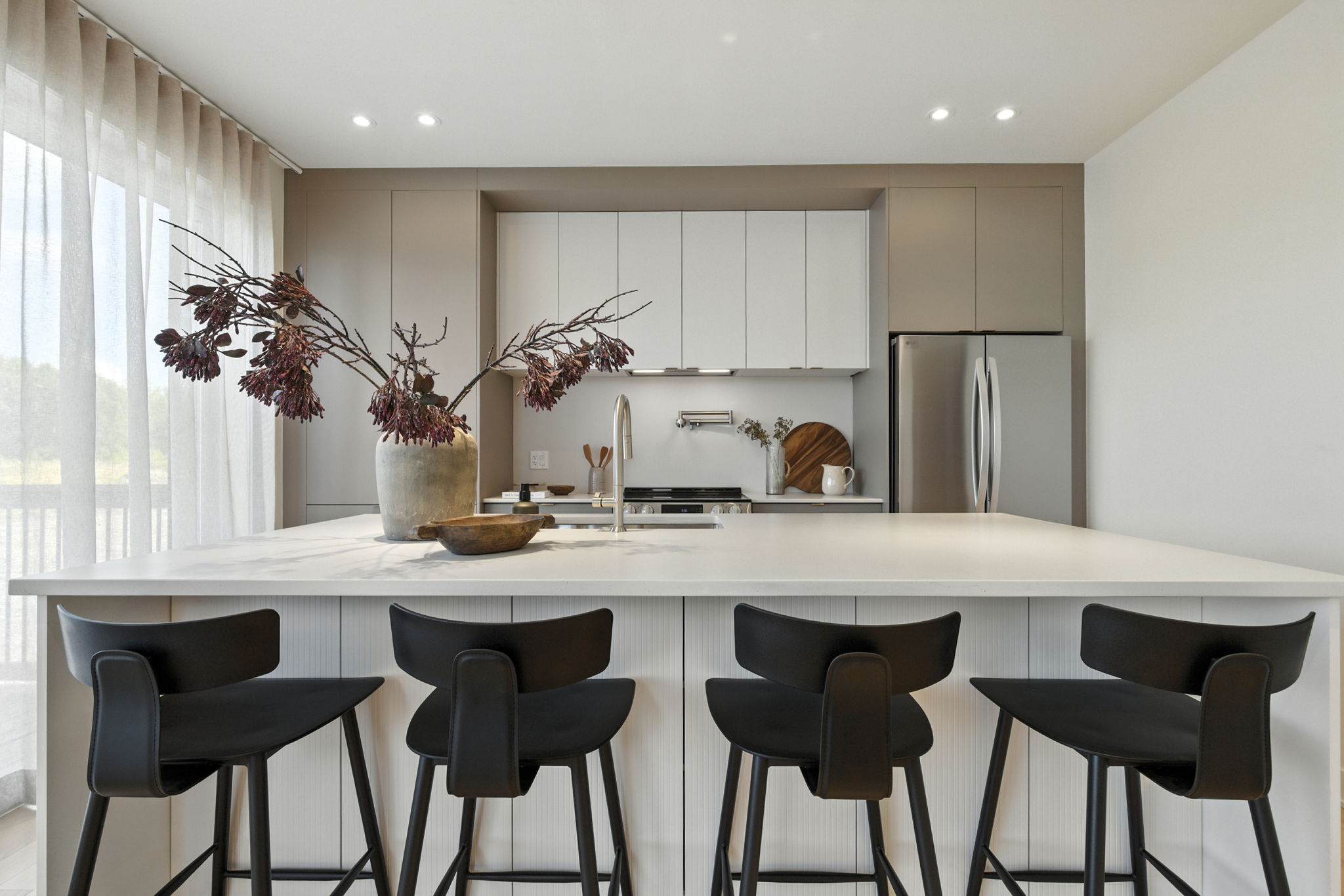 This initial phase offers 13 single-family homes, many of which have no rear neighbors, and some are adjacent to the river. Two house models with generous windows are available: the Dahlia and the Iris, both able to accommodate up to four bedrooms on the upper floor. In addition to these pre-designed models, we offer the option to design your own custom home.